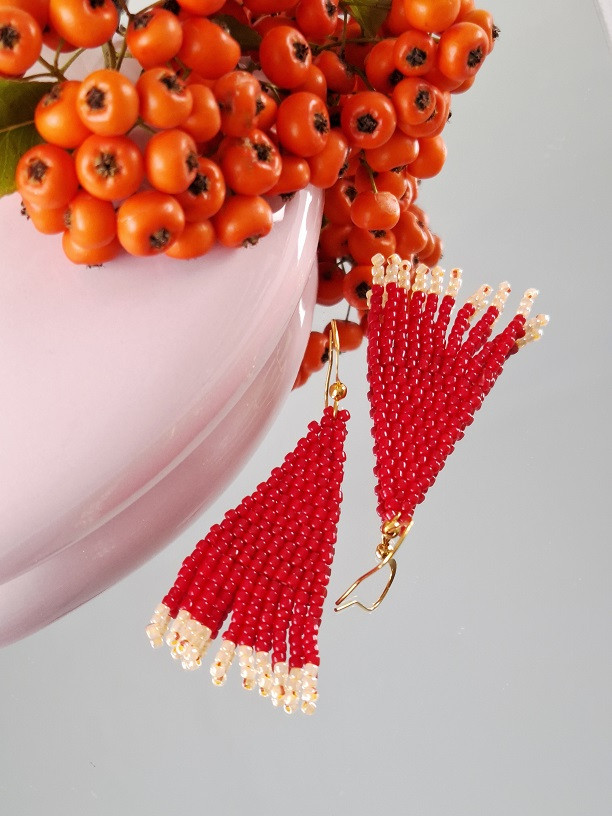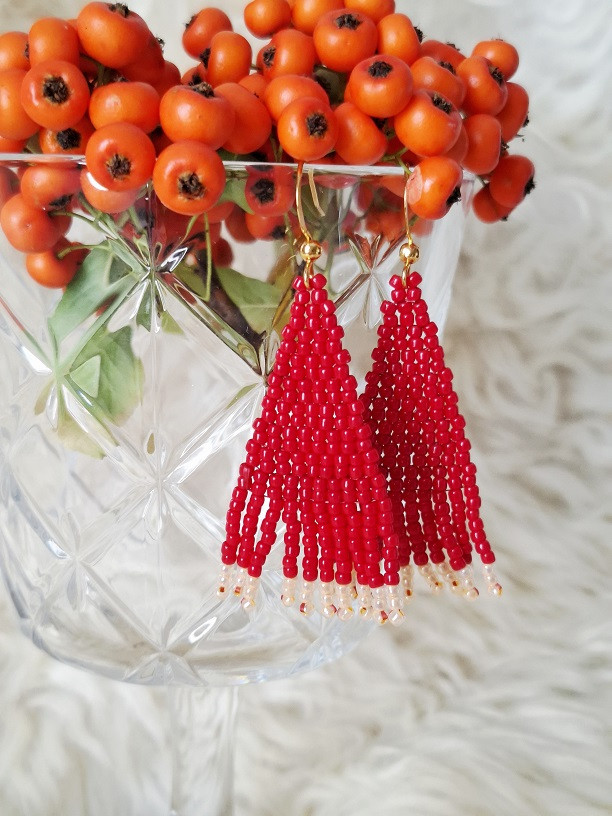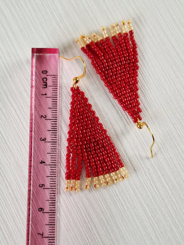 Tieto červené korálkové náušnice sú vyrobené z kvalitných japonských Toho korálikov, so spodným okrajom v žltej farbe, ktorá dodáva šperku žiaru a hravosť. Perfektné na každý deň, ľahko kombinovateľné a zároveň výrazné. 🌿