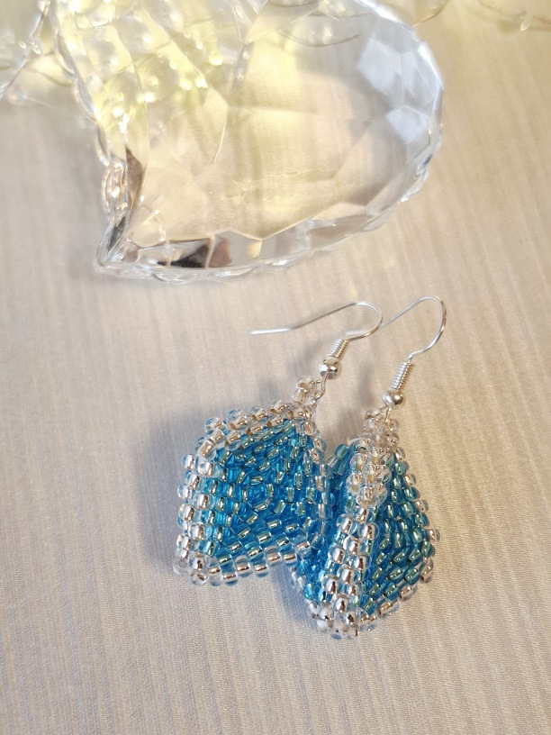 Náušnice Ľadové kryštály sú vytvorené z priesvitných sklenených korálok s vysokým leskom od renomovanej nemeckej firmy ✨. Ich jedinečný tvar pripomína brúsené ľadové kryštály – spredu pôsobia ako kosodĺžnik, no pri pohľade zhora či zdola odhaľujú trojramennú, dokonale symetrickú štruktúru, akoby vytesanú samotným mrazom 💎❄️.