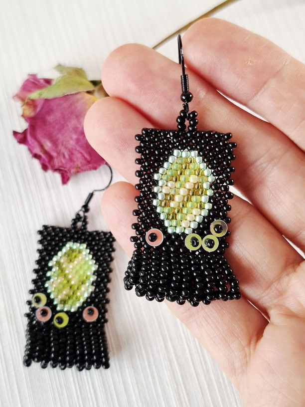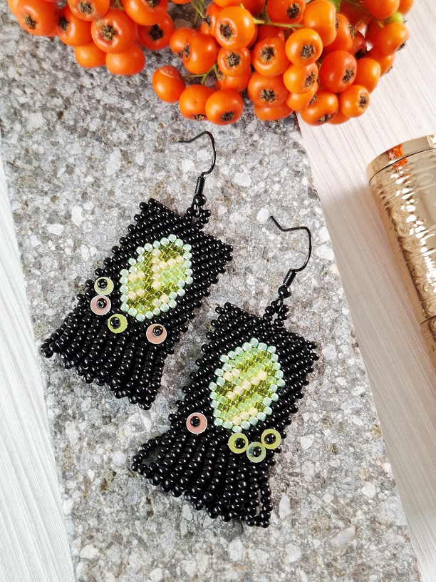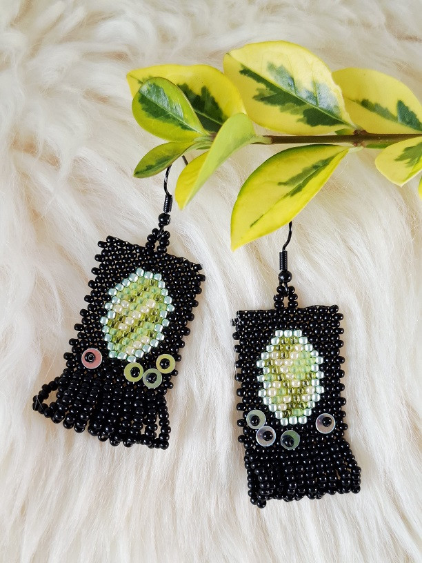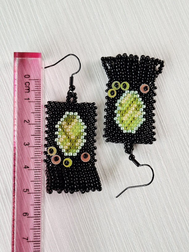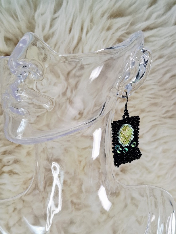 Korálkové náušnice Limet Mirabella pôsobia ako malé tajomné zrkadielka. Oválny vzor pripomína zasadený drahokam – v limetovo zelenej 🍋, ktorý kontrastuje s elegantným čiernym podkladom ⚫.