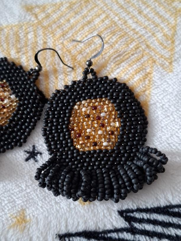 Tieto jedinečné náušnice spájajú eleganciu bieleho vonkajšieho kruhu a jemnosť priesvitných korálikov vo vnútri. Český sklenený materiál tu vytvára harmonický celok, kde sa rôzne farby, priehľadnosť a lesk prelínajú do dokonalého súzvuku. Zavesené koráliky v oblúku pod kruhmi jemne obohacujú celkový dizajn, dodávajúc mu ďalší rozmer a hĺbku – každý detail je súčasťou jedinečného a nadčasového celku.