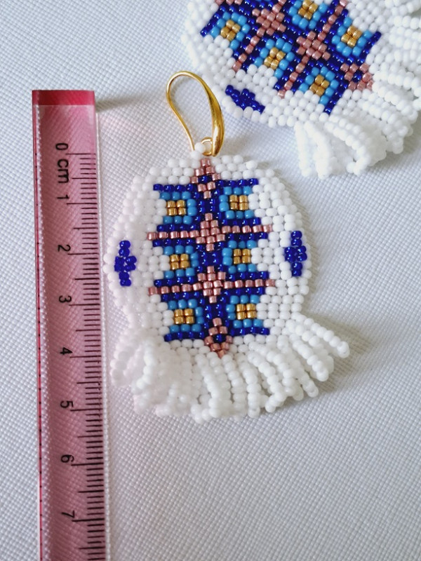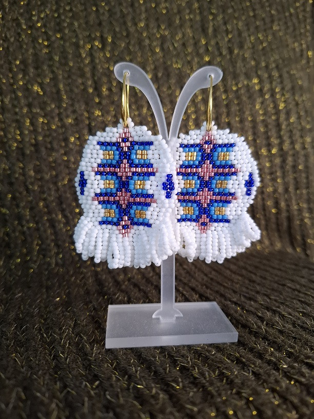 Biela a modrá farba sa v nich spájajú ako ranný sneh pod jasným nebom. K tomu sklenené koráliky vo farbe ružového zlata, ktoré dodajú všetkému slávnostný šmrnc bez zbytočného kriku. 🌨️🌅💫