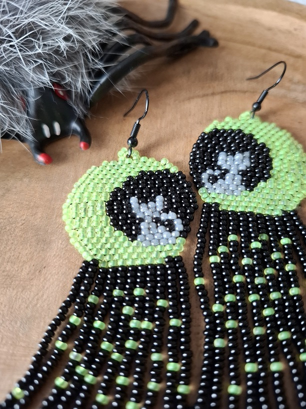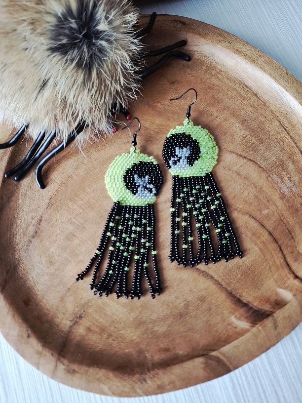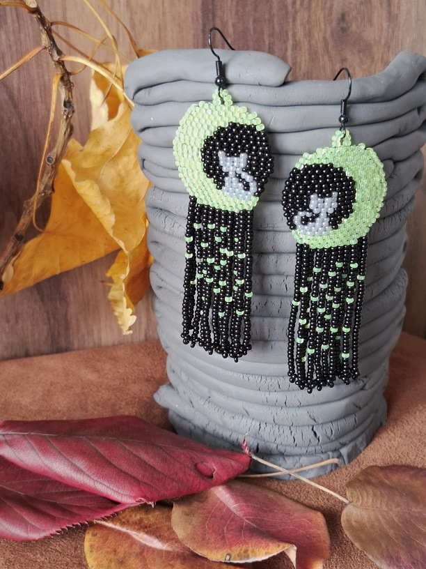 Tieto náušnice sú ručne vyrobené z japonských korálok Toho, a tiež kvalitných českých korálok, zaručujú plnú farebnosť skla a príjemné farby. Spojenie žltej žiary a temnej mačacej elegancie vytvára jedinečný kontrast – symbol Halloweenu aj večného spojenia svetla a tieňa. Nech tvoje uši rozžiaria noc – s kúskom čarovnej energie, ktorá nikdy nezhasne. 💫