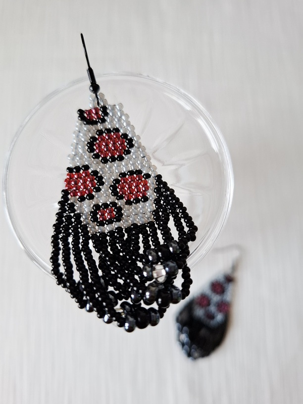 Farby spolu vytvárajú harmonický kontrast, ktorý pôsobí výrazne, no stále žensky a vyvážene. Každá nitka plná korálok sa pri chôdzi jemne pohupuje.