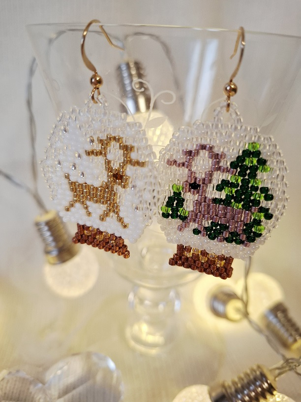 Tieto dvojfarebné korálkové náušnice zobrazujú jelenčeka zo Smolíčka Pacholíčka, ktorý kráča zasneženým lesom ❄️🦌✨. Každá náušnica je v iných farbách – spolu vytvárajú harmonický kontrast.