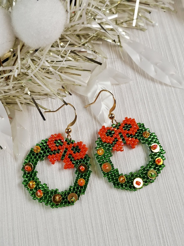 Tieto drobné adventné vence zdobí červená maslička 🎀. Na ich výrobu som použila krásne leské korálky, ktoré som starostlivo vybrala z japonských korálok "Toho" s vysokým leskom a jemným strieborným prietahom ✨. Každý venček je ručne vyrebený s láskou.