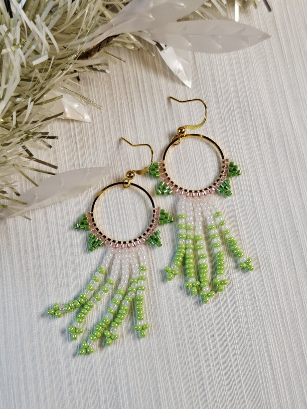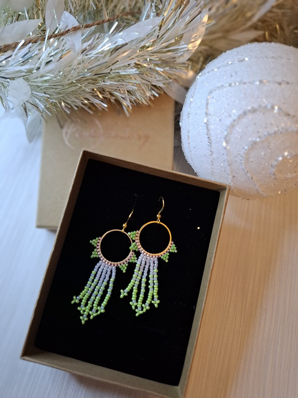 Náušničky sú vyrobené z japonských korálok "Toho"a tiež českých korálok, ktoré pri pohybe krásne zachytávajú svetlo ✨.