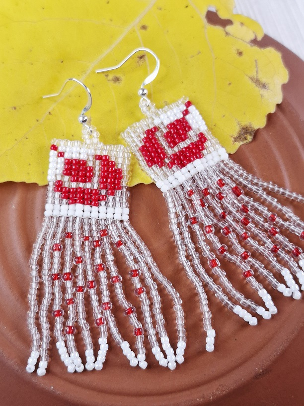 Náušnice kombinujú priesvitné sklo, mliečnu bielu a výraznú červenú – trojicu farieb, ktorá rozžiari každý deň. Korálky sú navlečené na jemných šnúrkach, ktoré sa pri každom pohybe nežne vlnia, akoby tancovali vo vetre. Jemné priesvitné detaily a kombinácia odtieňov vytvárajú hravý, ľahký, a pritom originálny šperk, ktorý upúta pozornosť a zároveň vyvoláva príjemnú náladu. ✨